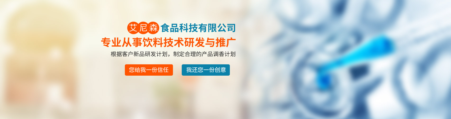 廊坊市艾尼森食品科技公司是一家專業(yè)從事飲料技術研發(fā)與推廣的公司,公司業(yè)務主要包括食品飲料技術咨詢與服務、產(chǎn)品定位與現(xiàn)有產(chǎn)品品質改進、新產(chǎn)品技術工藝研發(fā)等。公司坐落于京津冀核心地帶--廊坊市,位置得天獨厚,現(xiàn)與京津多家研究所形成戰(zhàn)略合作關系,為多家上市公司及知名企業(yè)提供技術支持與原材料供應。